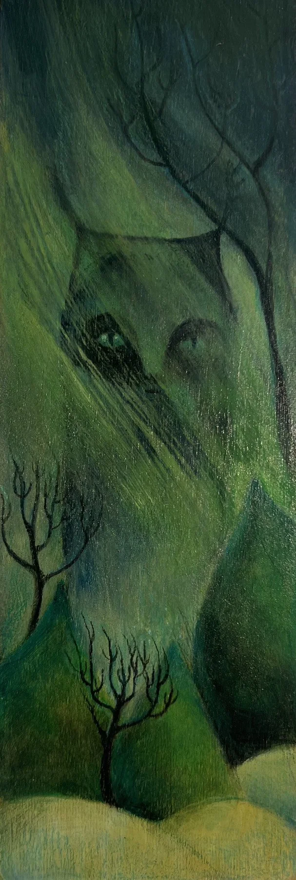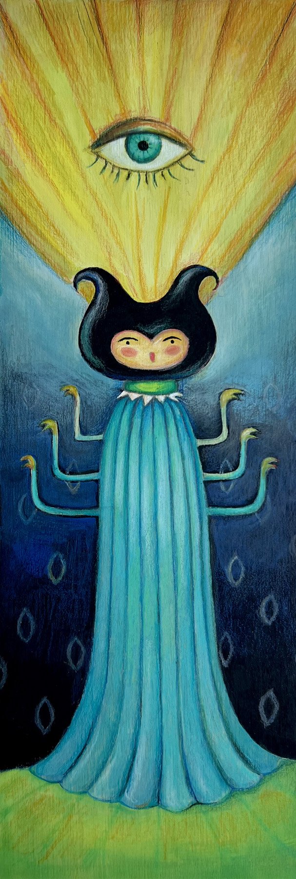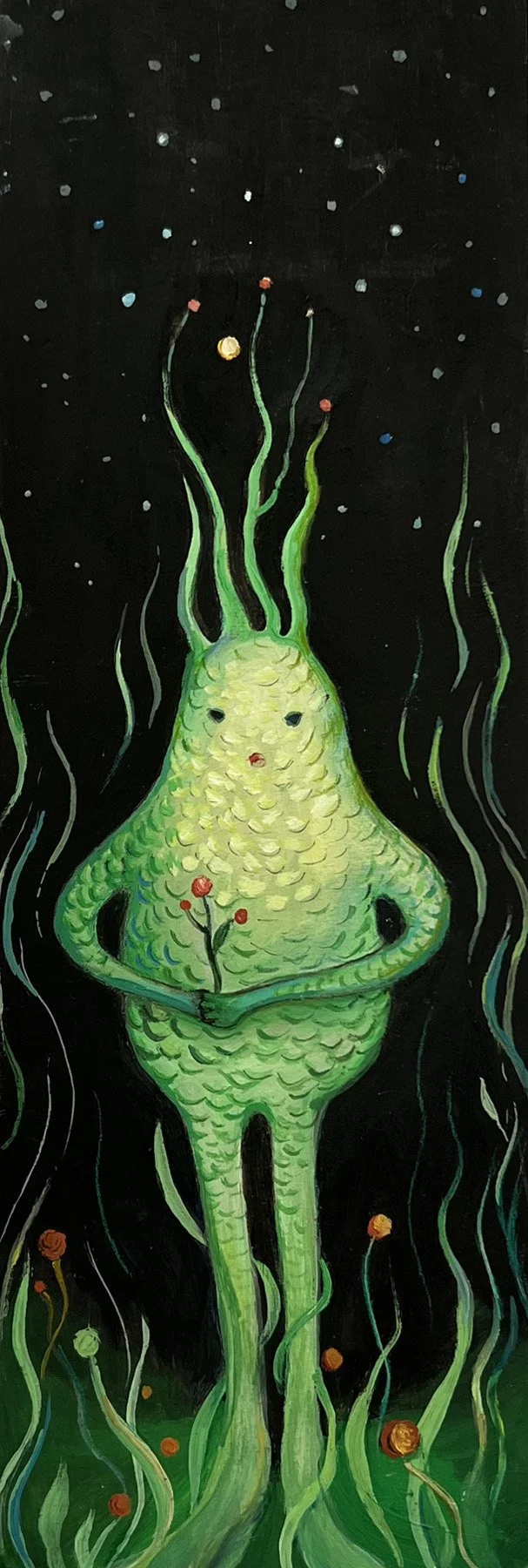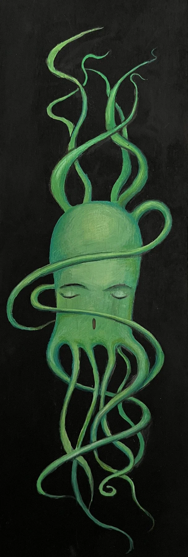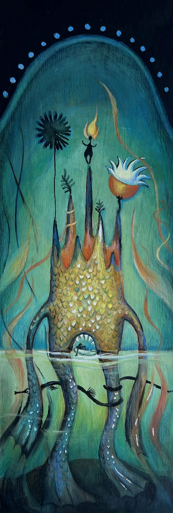 Seaweed Sally, who can turn trash into treasure, is one of 31 paintings created during COVID-19 lockdown. Determined to bring a little fun into the long isolation, Linda and her husband, Mike would take long walks in the nearby urban forest and imagine friends amongst them.